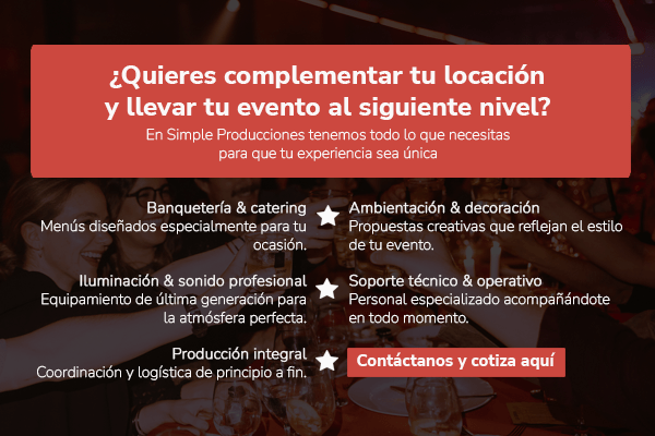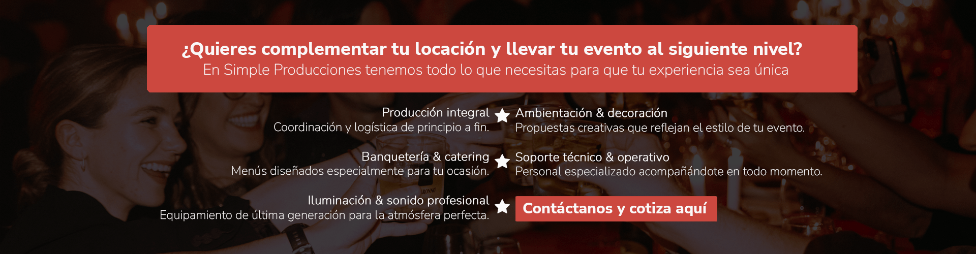 Lanzamientos de marca, conferencias, capacitaciones, celebraciones de fin de año.